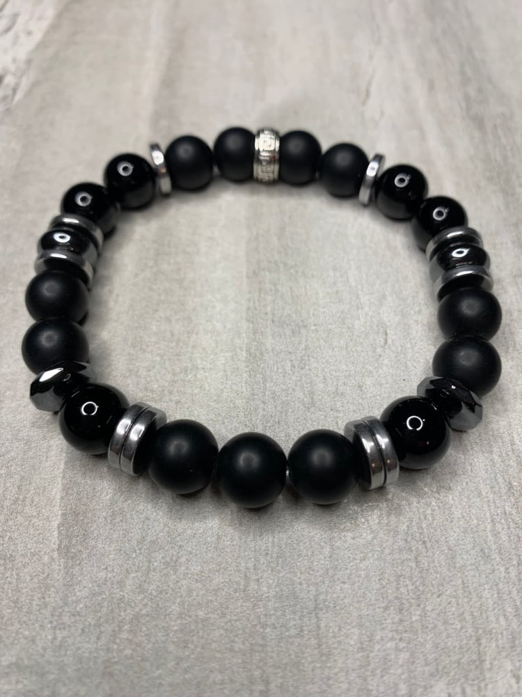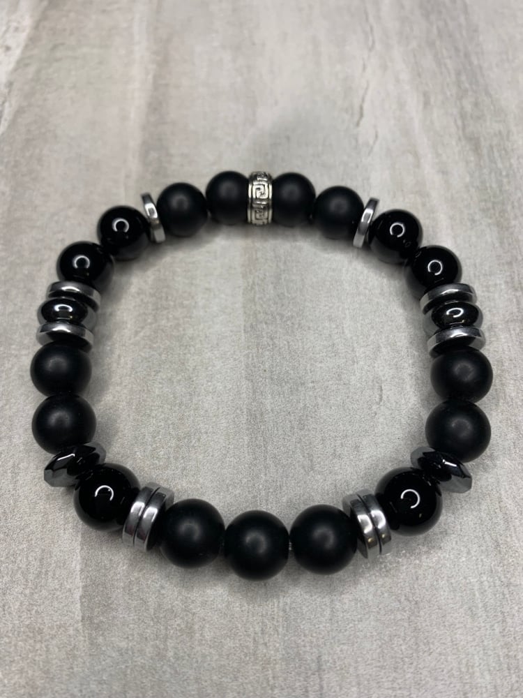 Crafted with polished and matte black onyx and hematite beads, Strength offers a sleek, powerful profile with subtle texture contrast. The combination of finishes creates a modern, refined look.